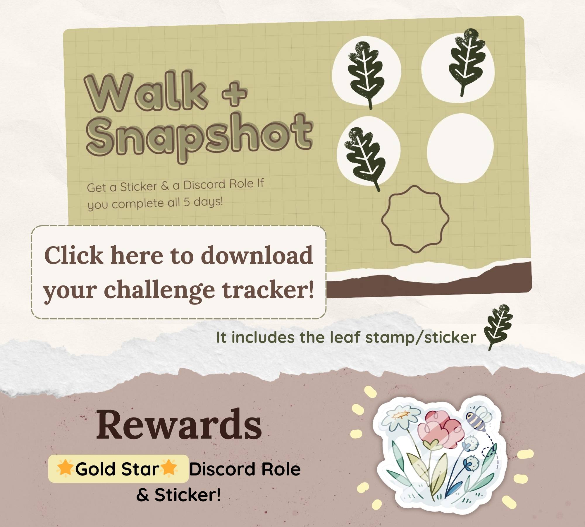 If you wish to download the challenge tracker to use digitally or printed, click the image down below. If you complete all 5 days, you'll get a special discord role and a sticker! (you have to be a member of the discord server to receive the rewards)